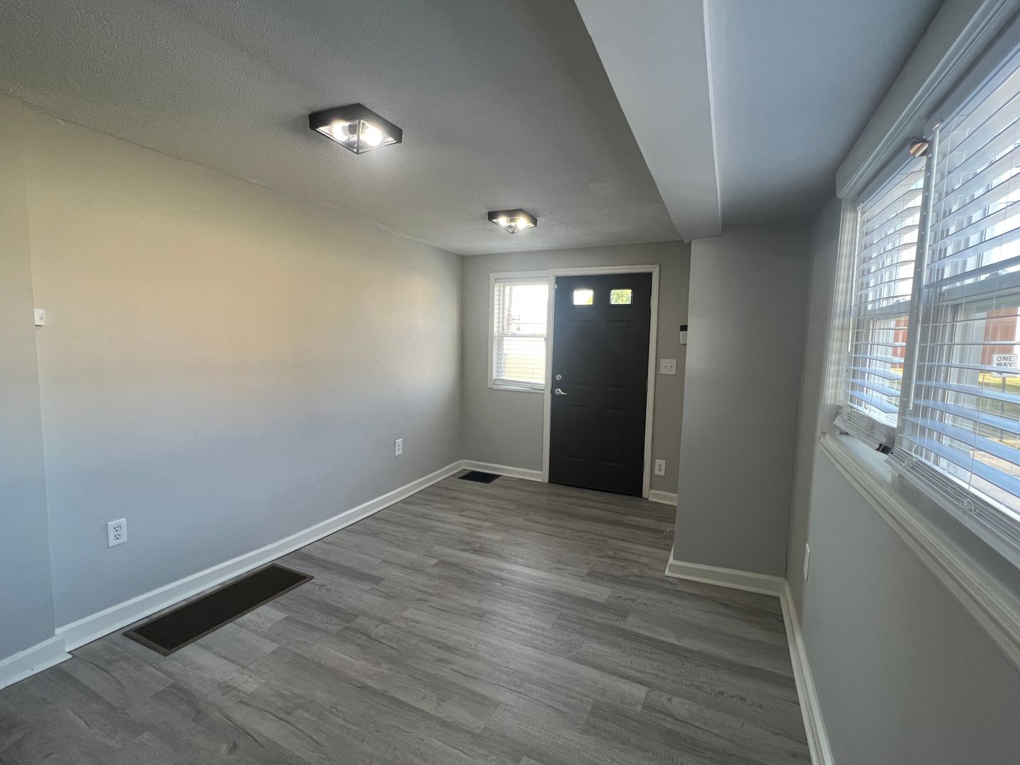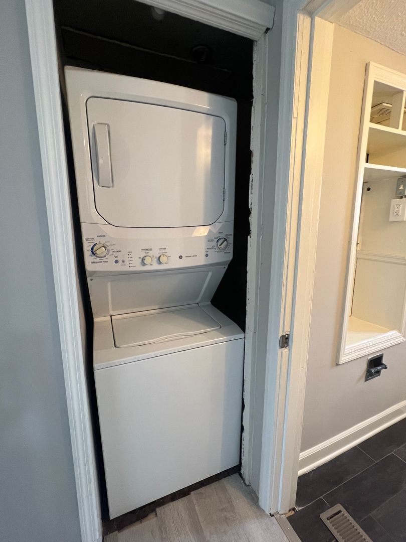 Available now, this cozy three-bedroom, one-bath single-story home! This home has all the updates you are looking for. Freshly painted with natural paint colors, big windows allowing for tons of natural light with faux wood blinds in your living room. Your functional kitchen includes great counter space with tons of cabinetry for storage, an electric range with an overhead microwave, and glass tile backsplash. 3 good size bedrooms share an updated bath. Your bathroom features a walk-in shower with subway tile surround, built-in shelves for additional storage, and industrial-style lighting. Washer and dryer included. Central AC and fenced-in backyard.