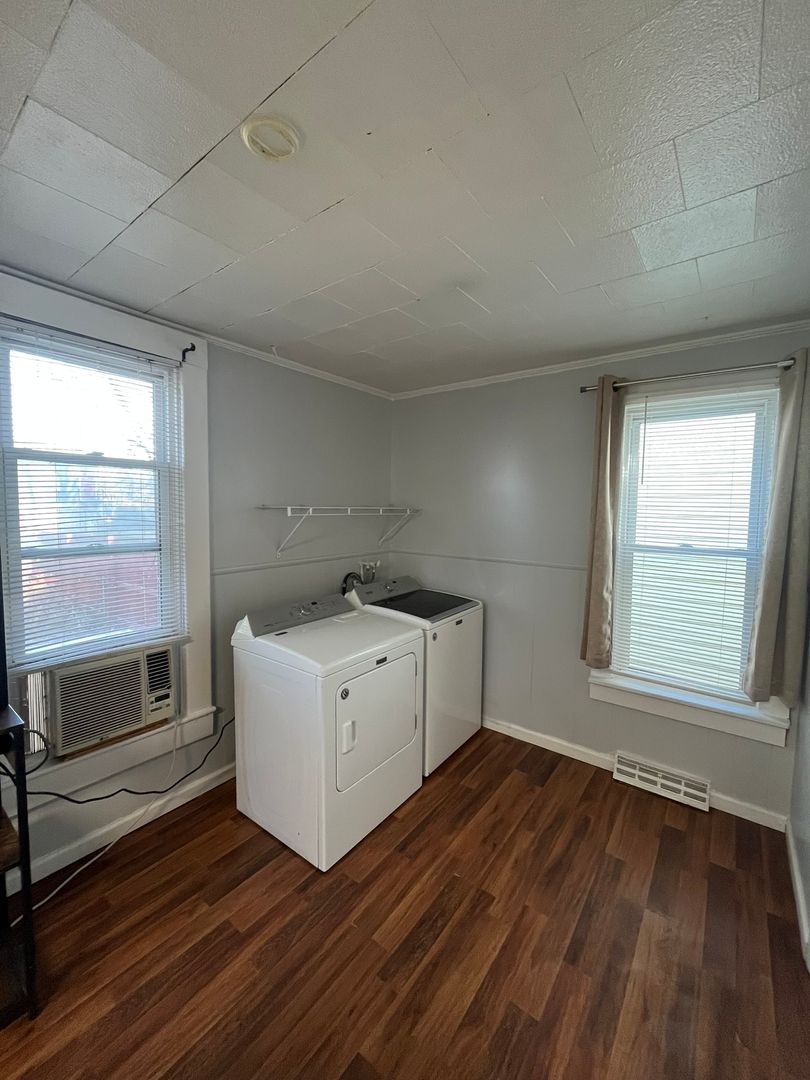 Upon entry, you are welcomed into the living room, which provides a comfortable space for everyday living. The primary bedroom is conveniently located on the first floor and features a beautiful decorative fireplace, adding character and charm to the space. Also on the main level is a recently renovated full bathroom, a spacious kitchen equipped with all major appliances, and first-floor laundry with washer & dryer included for added convenience.