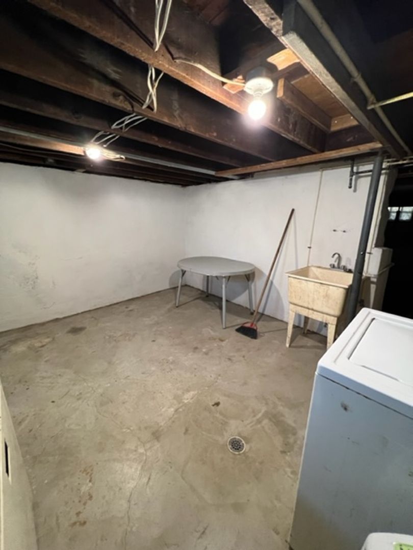 Upstairs, you’ll find two bright and generously sized bedrooms with closets, fresh neutral paint, and plush carpeting, along with a full bathroom. The basement includes a washer and dryer with a folding table for added convenience. Outside, enjoy a fully fenced yard—perfect for outdoor space and privacy.